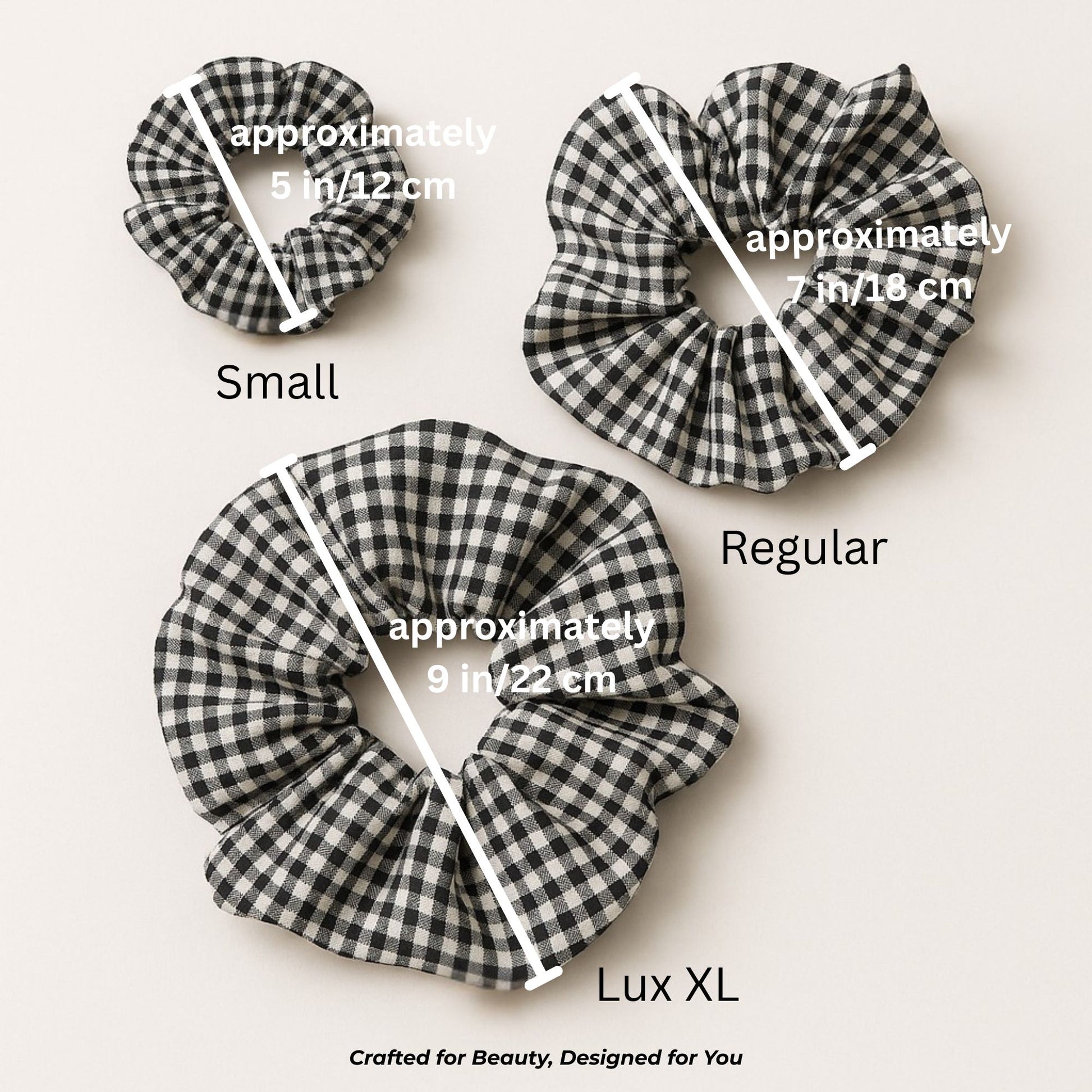 Meet our Black Gingham scrunchie: a handmade cotton accessory crafted for thick, curly, or heavy hair. With its timeless checkered pattern and durable hold, it’s the perfect mix of everyday style and strength.