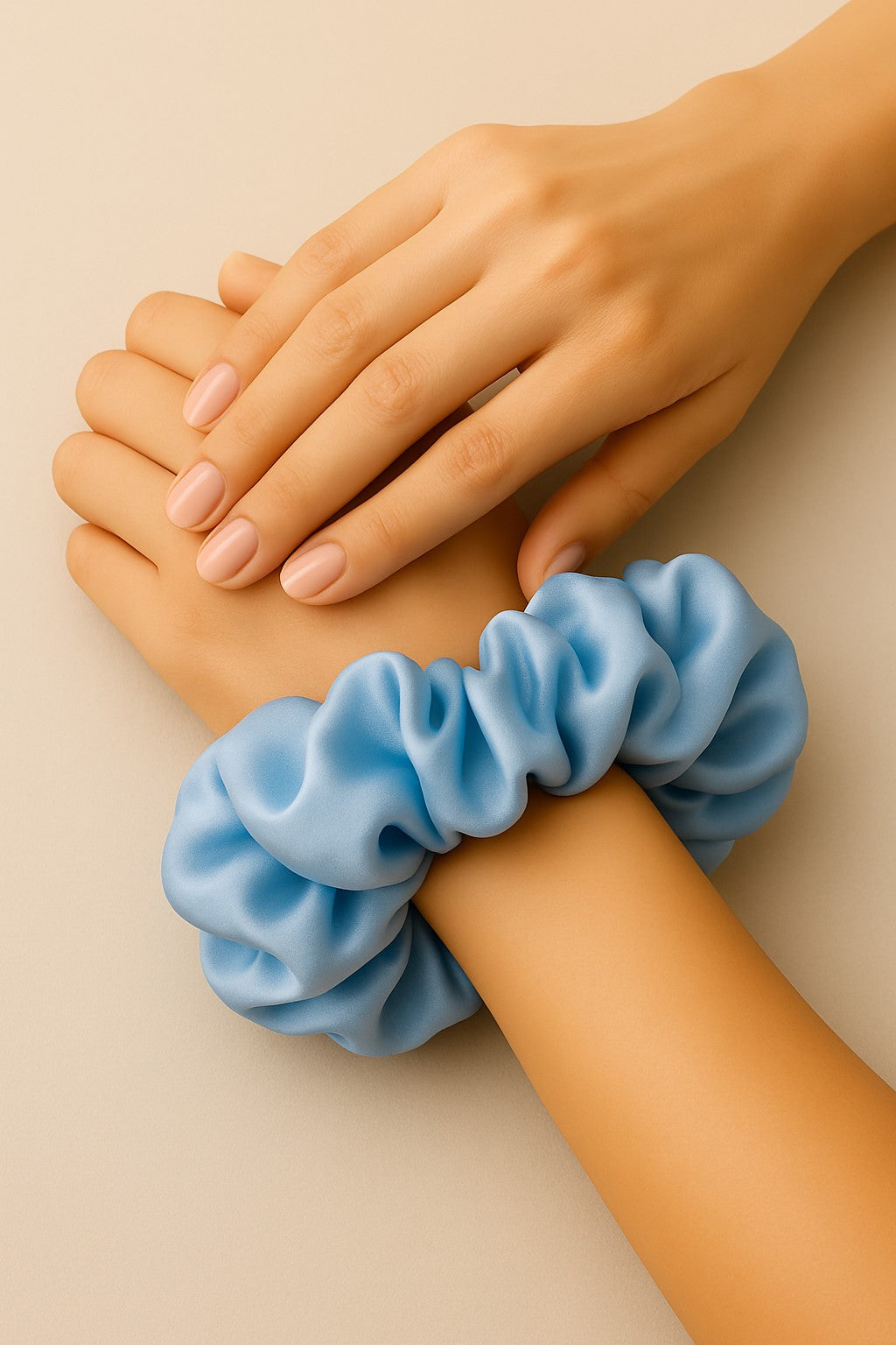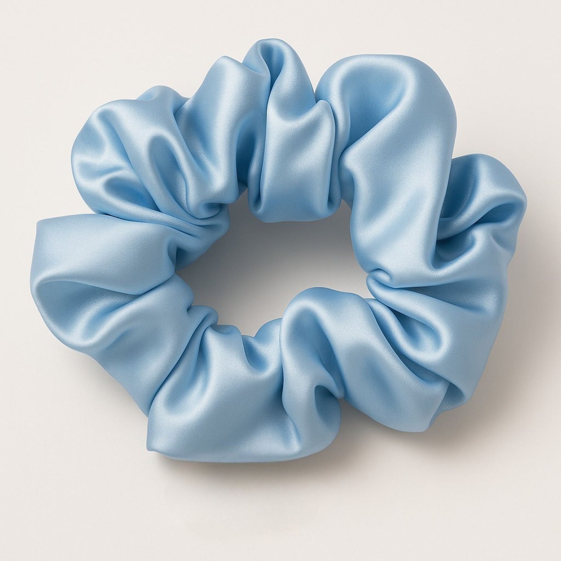 Cool and polished, our Blue Satin Scrunchie is handmade for thick, curly, or heavy hair. Breathable satin and durable elastic bring easy, stylish hold.