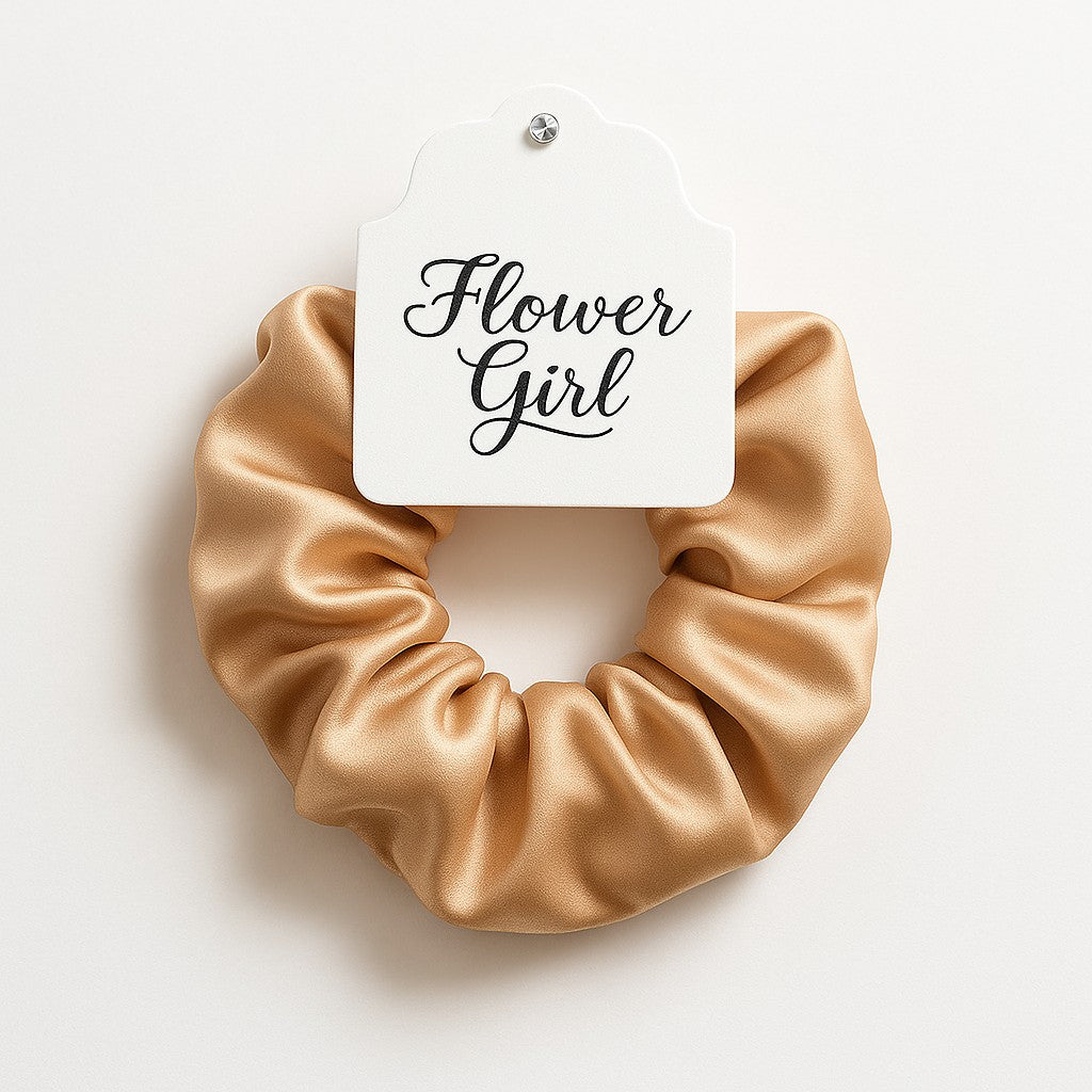 Say “yes” to timeless charm with our I Do Collection of satin wedding scrunchies. Each piece is handcrafted with soft, luxurious satin—perfect for the bride and her bridal party. Designed for comfort and elegance, these scrunchies feature a delicate crystal-accented tag with your choice of “Bride,” “Bridesmaid,” or “Maid of Honor.”