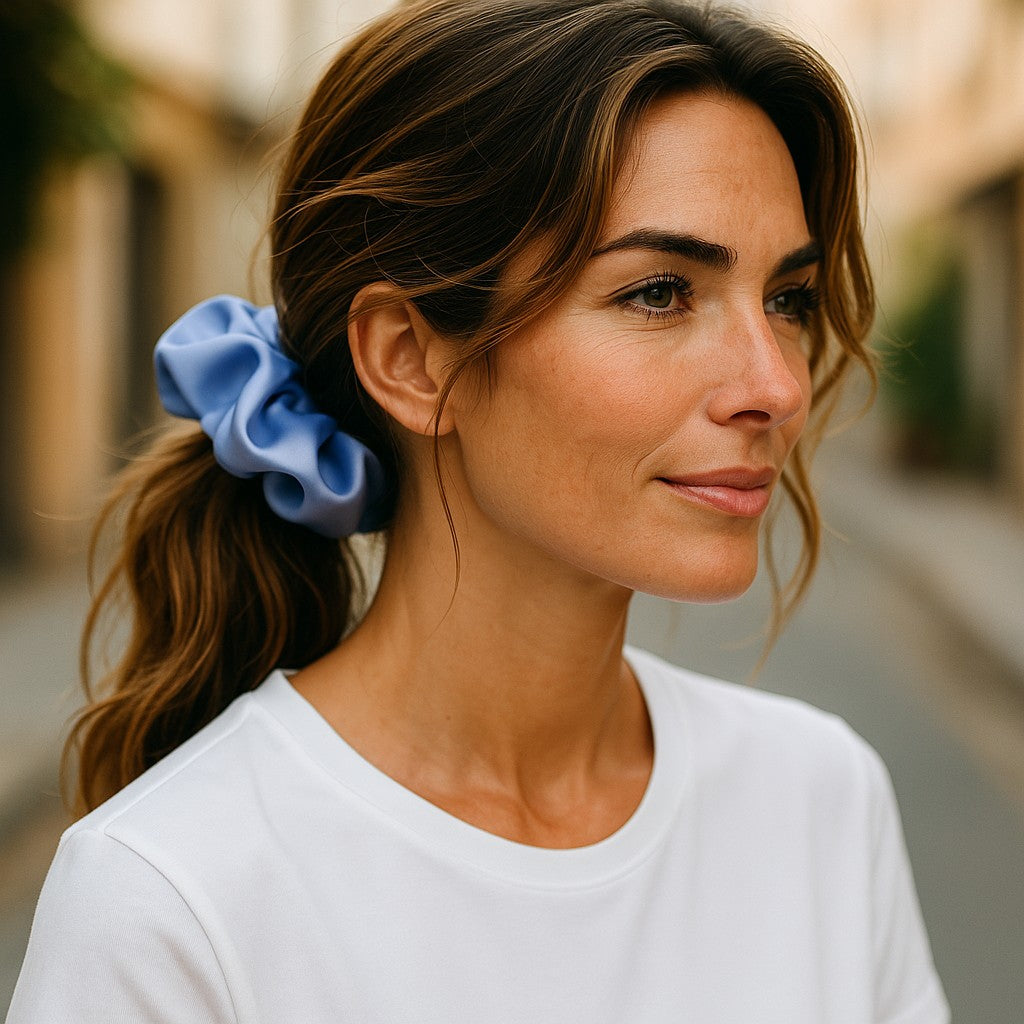 Add a touch of softness with our Lavender Satin Scrunchie. Handmade for thick, curly, or heavy hair, it offers a light, smooth hold perfect for easy, beautiful styles.