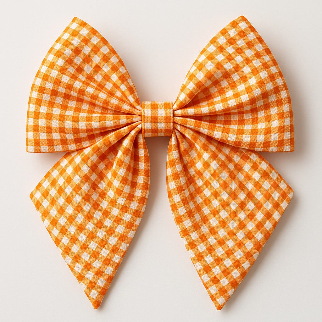 Add sunny energy with our Orange Gingham Sailor Bow! Handmade for all hair types, it’s vibrant, breathable, and crafted for cheerful, secure styling.