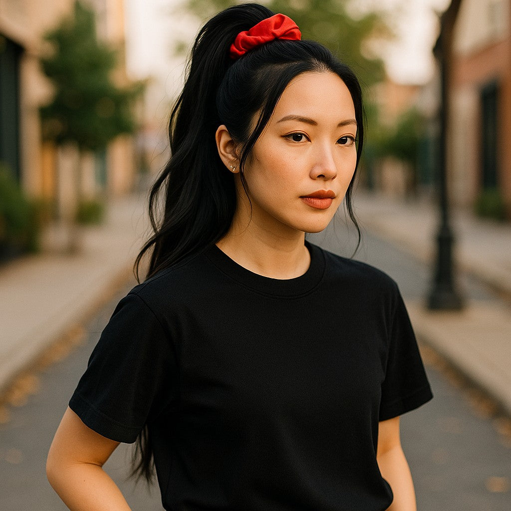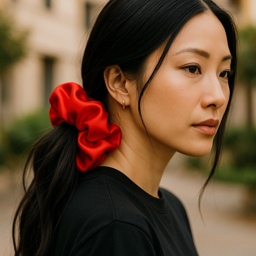 Add fierce flair with our Red Satin Scrunchie, handmade for thick, curly, or heavy hair. It’s bold, bright, and built for secure, all-day style.